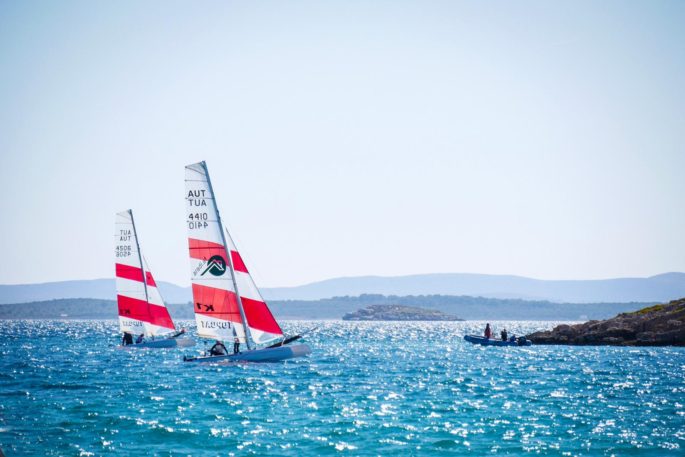 Den Fortgeschrittenen standen zum ersten Mal auch zwei RS Feva (ebenfalls vom Segelverband) zur Verfügung. Die Begeisterung zu zweit in einem flotten Boot mit Genaker zu segeln war riesig. Ihre Optis haben es an den drei Tagen nicht mal ins Wasser geschafft. Stattdessen wurde in unterschiedlichen Teams der See erobert und die Feva’s in allen Lagen getestet.