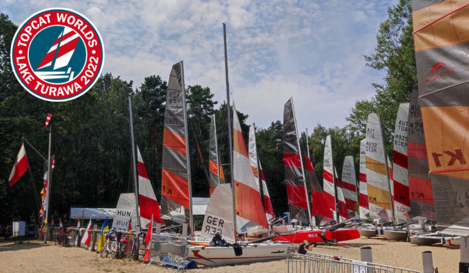 Seitdem bekannt wurde, dass die Topcat WM 2022 in Polen stattfinden wird, haben wir jeden Sommer die Windsituation am Turawasee mit der Windfinder-App begutachtet. Als Starkwindsegler war die Sorge groß nur Leichtwind vorzufinden.